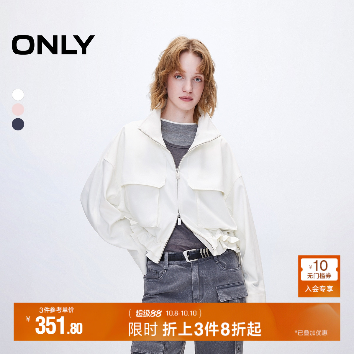 ONLY2025秋季新款工装风大口袋短款宽松高领休闲风薄款风衣外套女