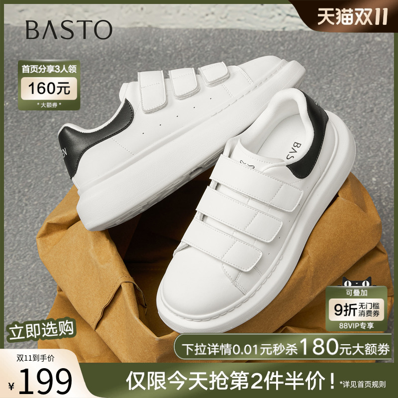百思图2025秋季新款魔术贴松糕厚底小白鞋女运动休闲鞋L9093CM5