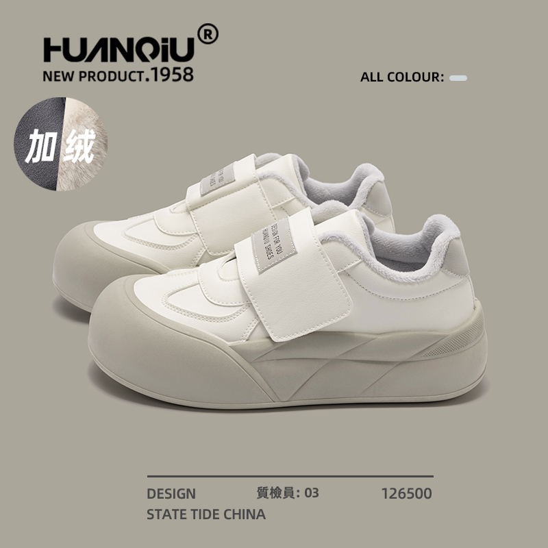 环球加绒厚底二棉鞋女款2025新款休闲小白鞋女秋冬百搭魔术贴板鞋