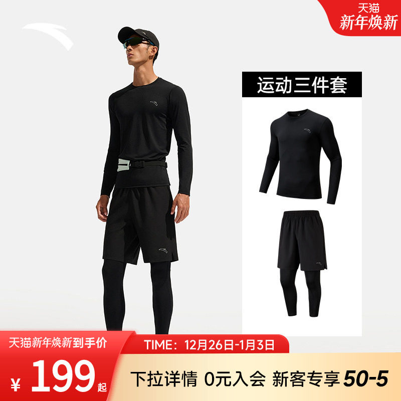 安踏运动套装男款2025新款吸湿速干运动三件套弹力透气跑步训练服