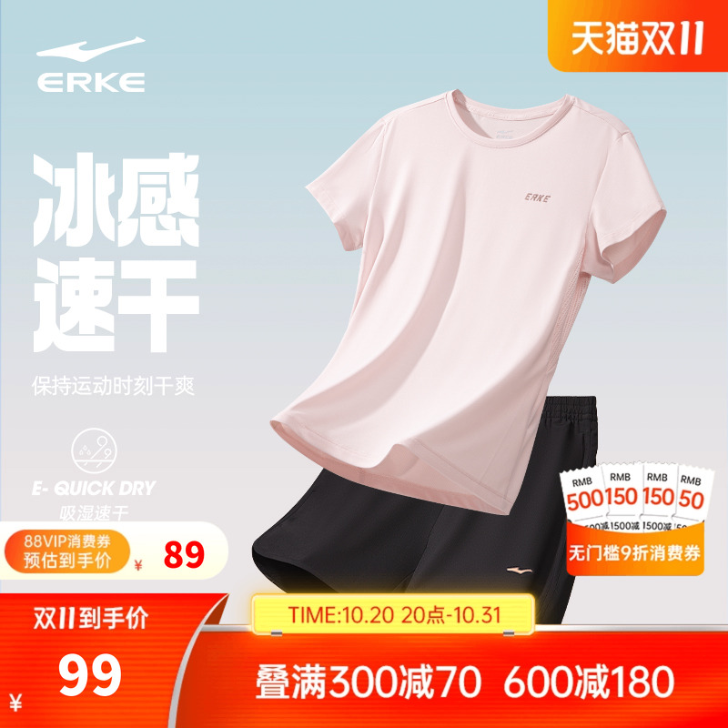 鸿星尔克运动套装女夏季女士速干衣羽毛球跑步运动服短袖t恤短裤