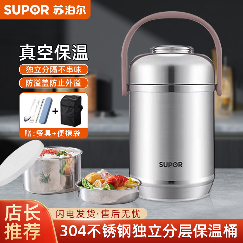 苏泊尔304不锈钢真空保温桶大容量分层饭盒学生上班族便携提桶