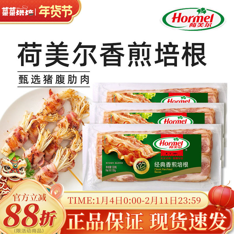 荷美尔香煎培根120g*3美式原切肉片三明治专用手抓饼食材早餐家用