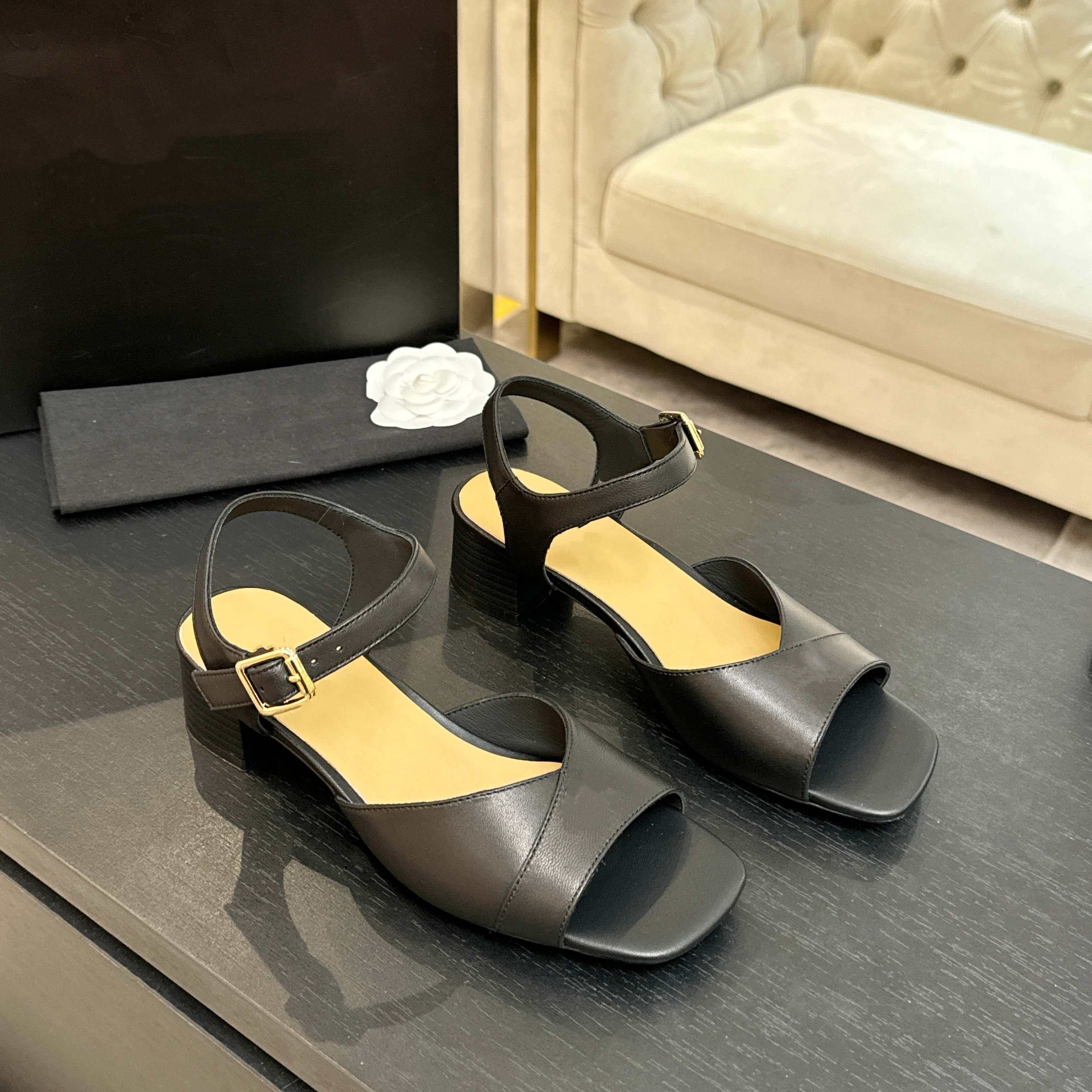 真皮舒适软底凉鞋女中跟粗跟夏季女鞋一字带包头高跟鞋女时装凉鞋