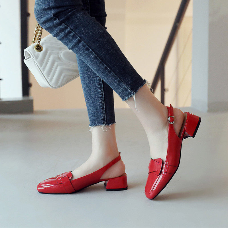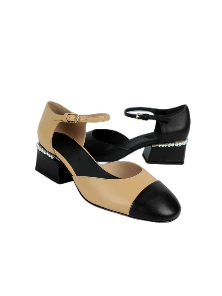 - 一字扣高跟凉鞋