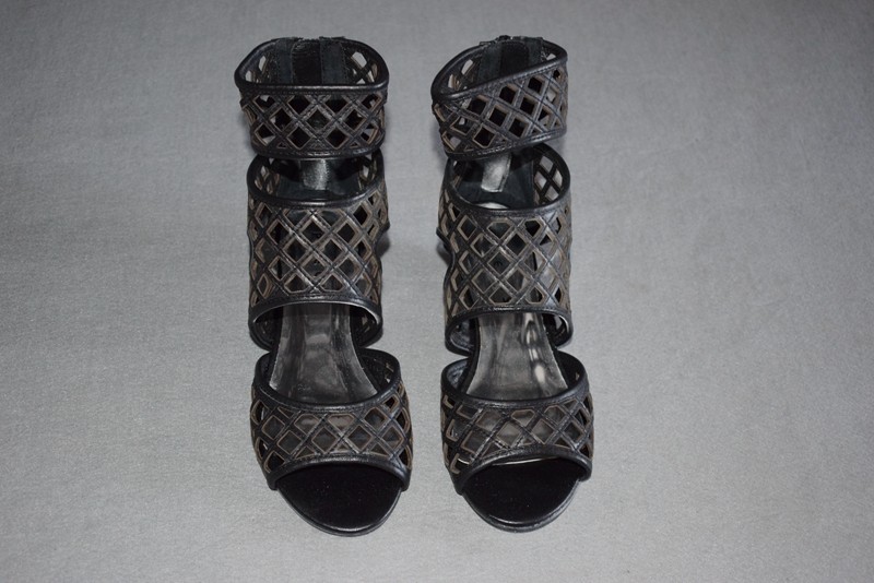 夏季新款露趾水钻镂空绒面一字扣带凉鞋女中古款性感细跟高跟鞋女