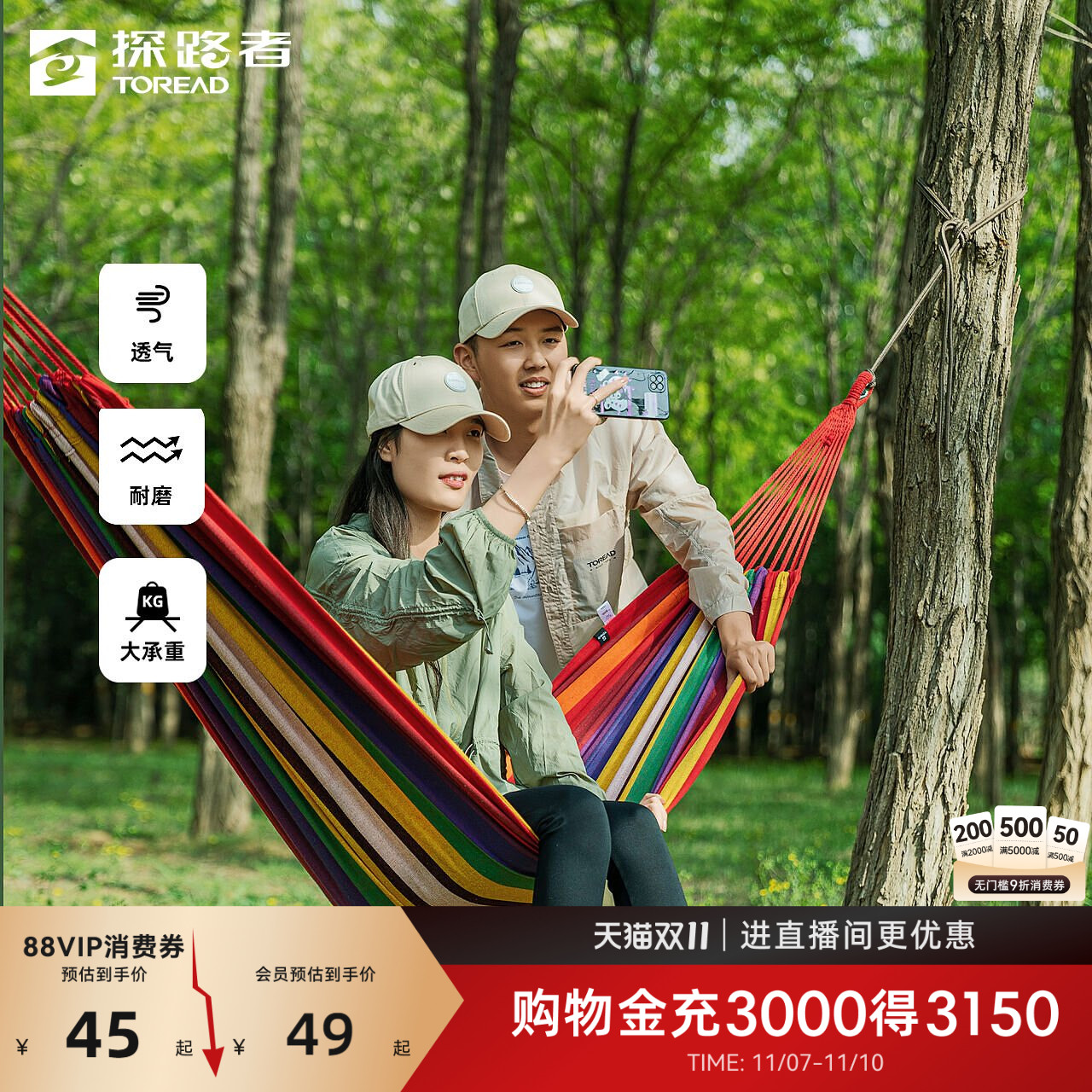 探路者吊床户外野外露营防侧翻学生宿舍室内睡觉悬挂帆布秋千成人