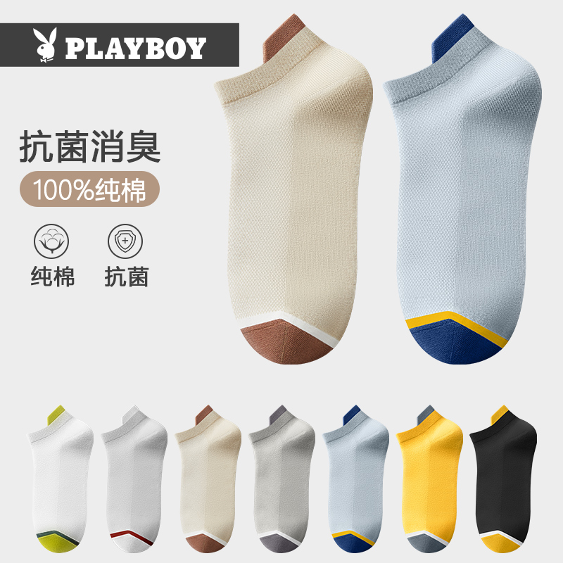 花花公子男士袜子夏季纯棉船袜抗菌新款吸汗薄款全棉短袜透气潮流
