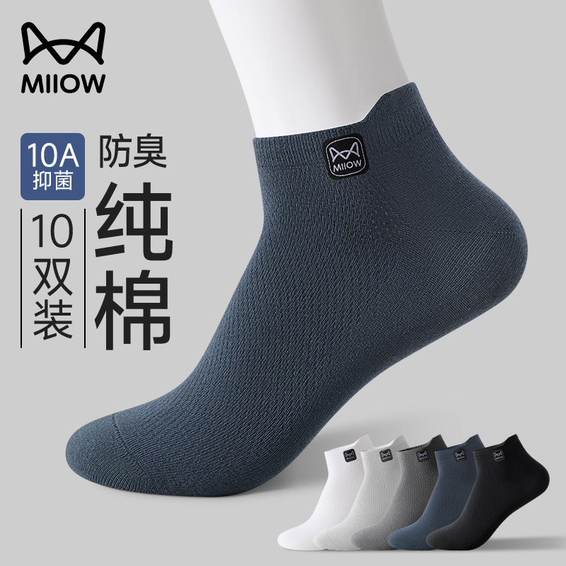 猫人纯棉袜子男款100%全棉短袜夏薄款吸汗透气抗菌防臭脚船袜男士