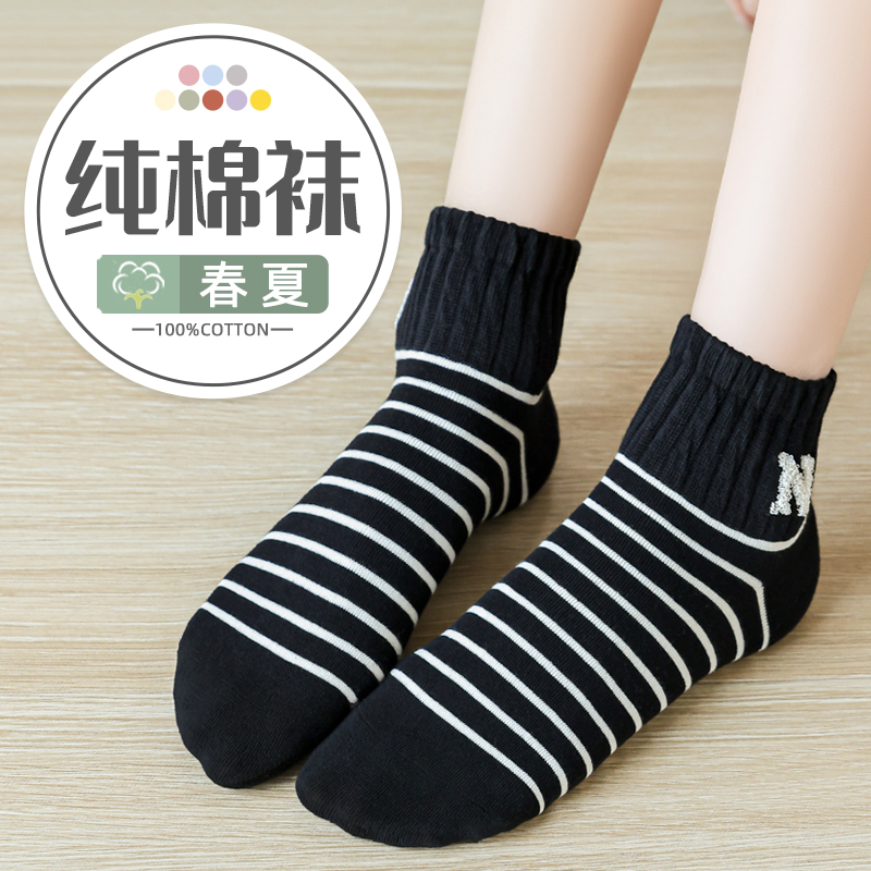 纯棉袜子女春秋款100%全棉短袜吸汗防臭可爱短款夏季薄款诸暨中筒