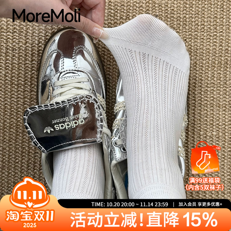 德训鞋白色袜子女夏季薄款网眼中短筒袜芭蕾风miu系无骨全棉短袜