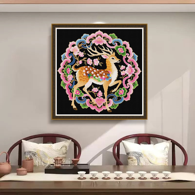 春天十字绣中式现代满绣梅花鹿客厅餐厅手工自己绣2025新款线绣画