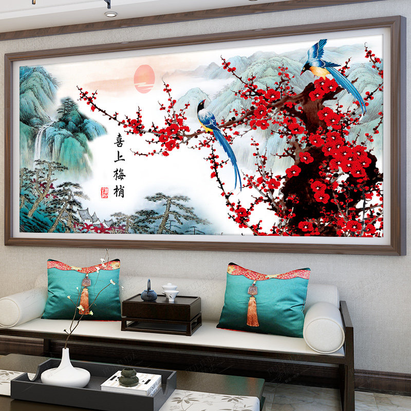 喜上眉梢十字绣2025年新款客厅中式花鸟图卧室床头画梅花手工刺绣