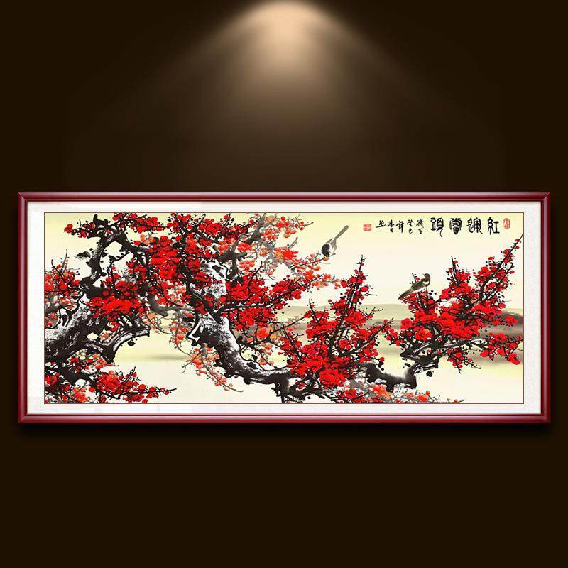 自己绣红梅报春图十字绣红梅大幅水墨国画2026新款小格梅花线绣