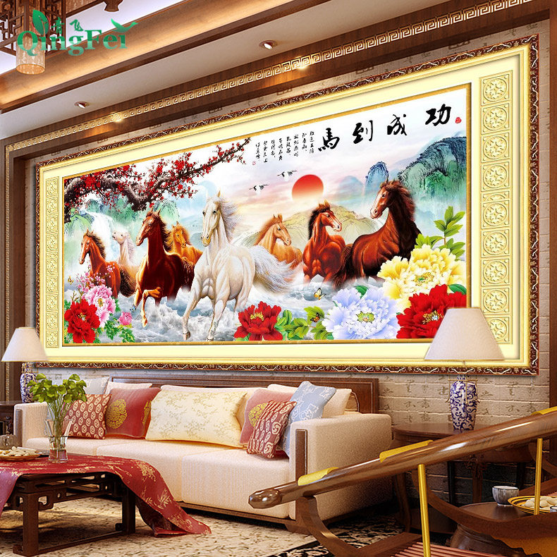 青飞新图发布会八骏图十字绣马到成功梅花旭日东升客厅2米4大画