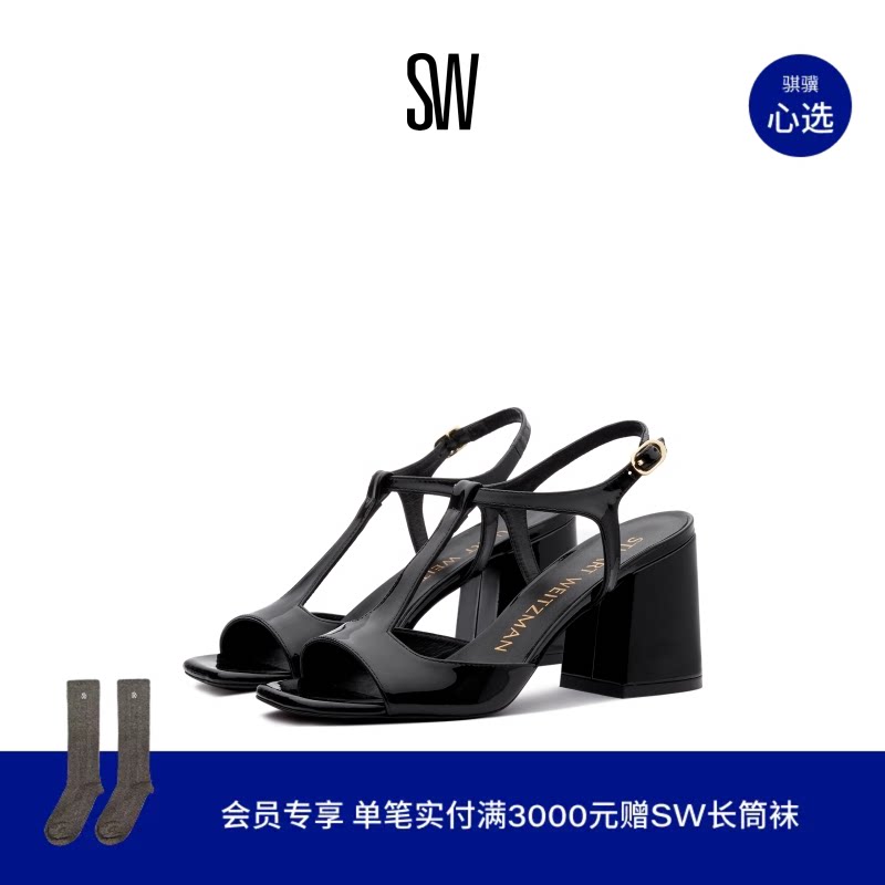 Stuart Weitzman/SW DANCER 35 BLOCK SANDAL 一字带方跟凉鞋女
