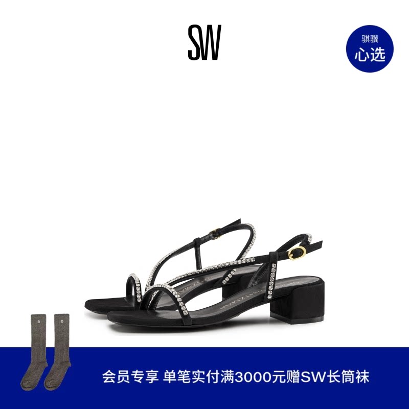SW SOIREE CRYSTAL 35 SANDAL 春夏水晶一字带粗跟方头凉鞋女
