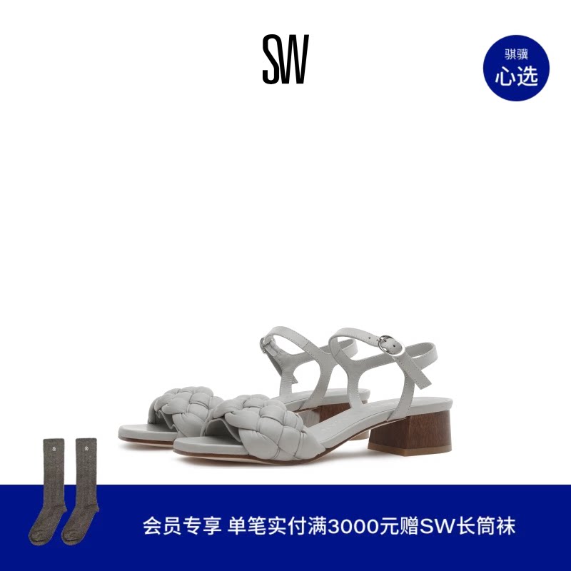 SW BRAIDA 35 SANDAL 休闲风方头立体感编织粗跟一字带凉鞋女