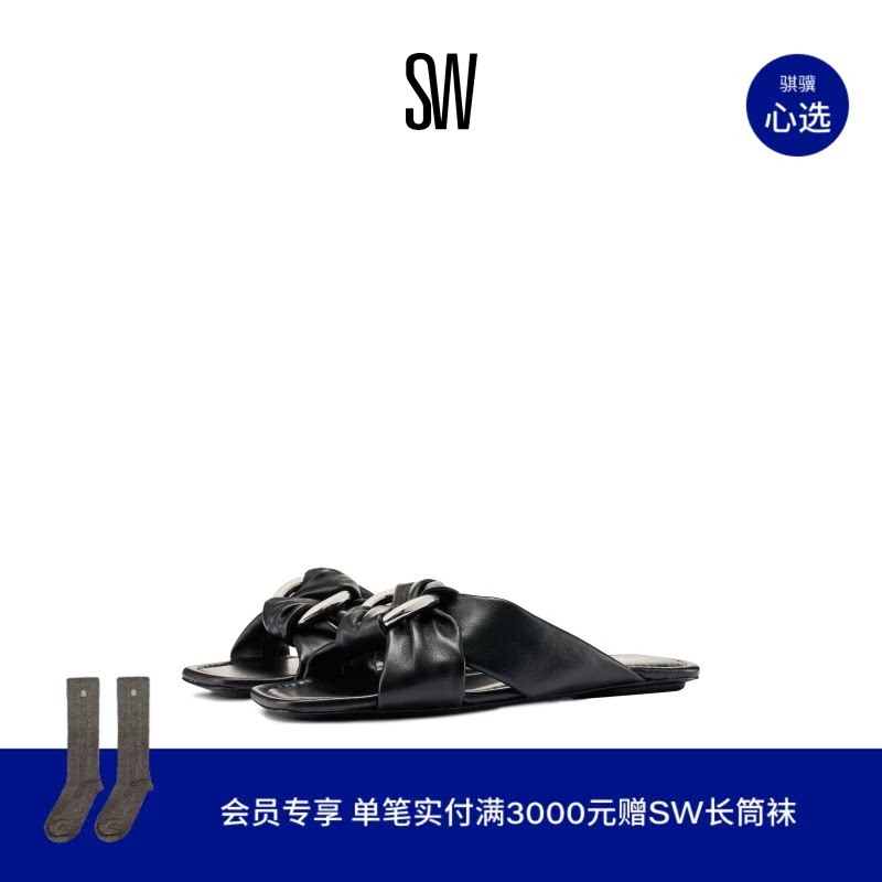 【春夏新品】SW JULIE SLIDE 春夏圆头平底珍珠装饰凉鞋拖鞋女
