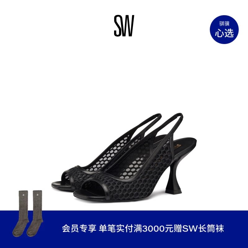 SW CAYMAN XCURVE 85 SLINGBACK 网面露跟鱼嘴鞋高跟鞋凉鞋女夏