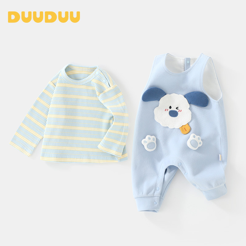 DUUDUU条纹2025春款婴儿衣服外出服新生儿连体衣a类男宝宝背带裤