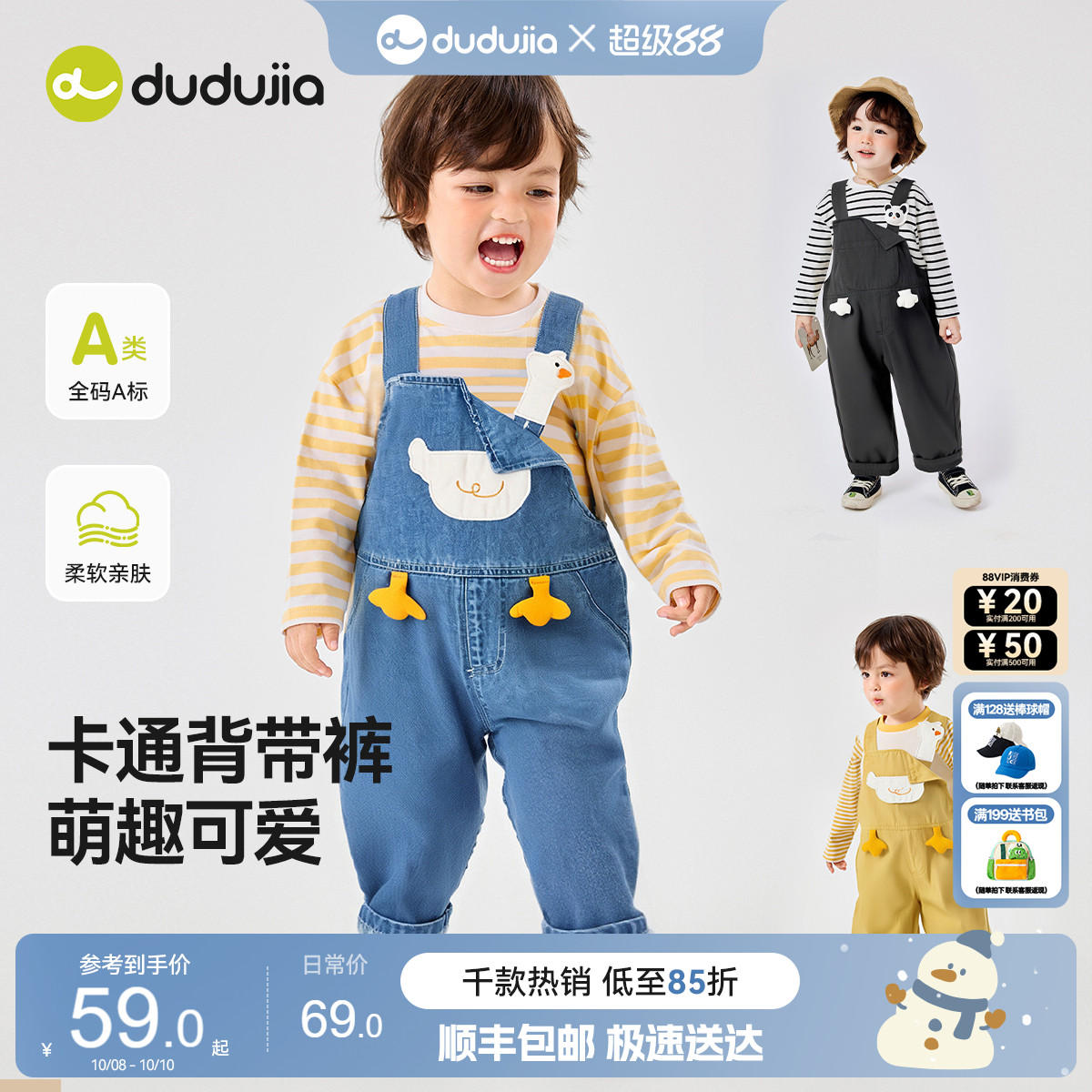 嘟嘟家宝宝背带裤春秋儿童裤子春款男童长裤女童春装卡通休闲裤潮