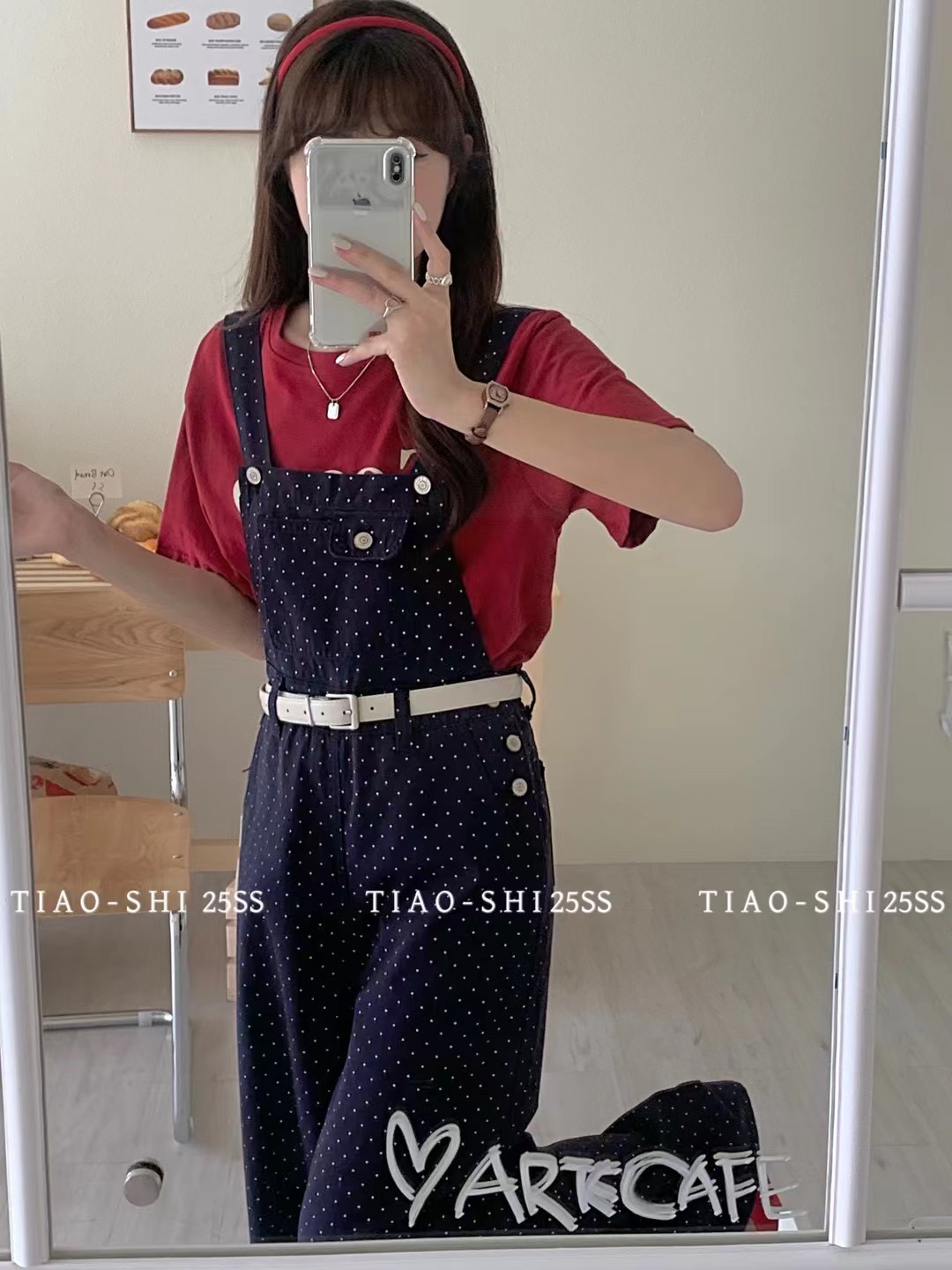 2025春款新品韩版潮流时尚宽松波点背带裤女宽松百搭直筒休闲连体