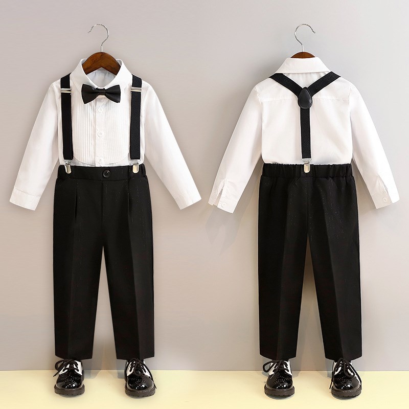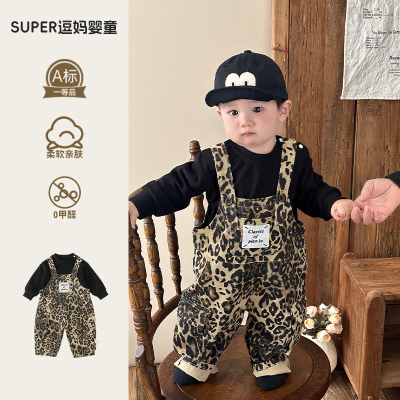 宝宝春装新款儿童背带裤春秋款网红洋气男宝春款外出服炸街两件套