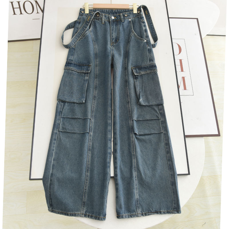 美式工装风背带裤2025春款复古可拆卸气质显瘦连体裤牛仔阔腿裤