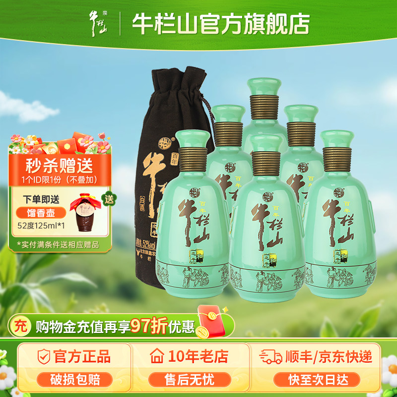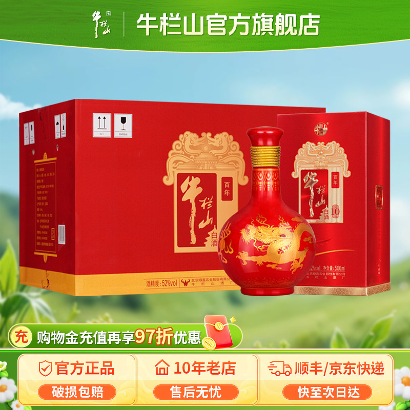 牛栏山百年红10高度52度浓香型白酒水500ml*6瓶送礼盒装官方正品