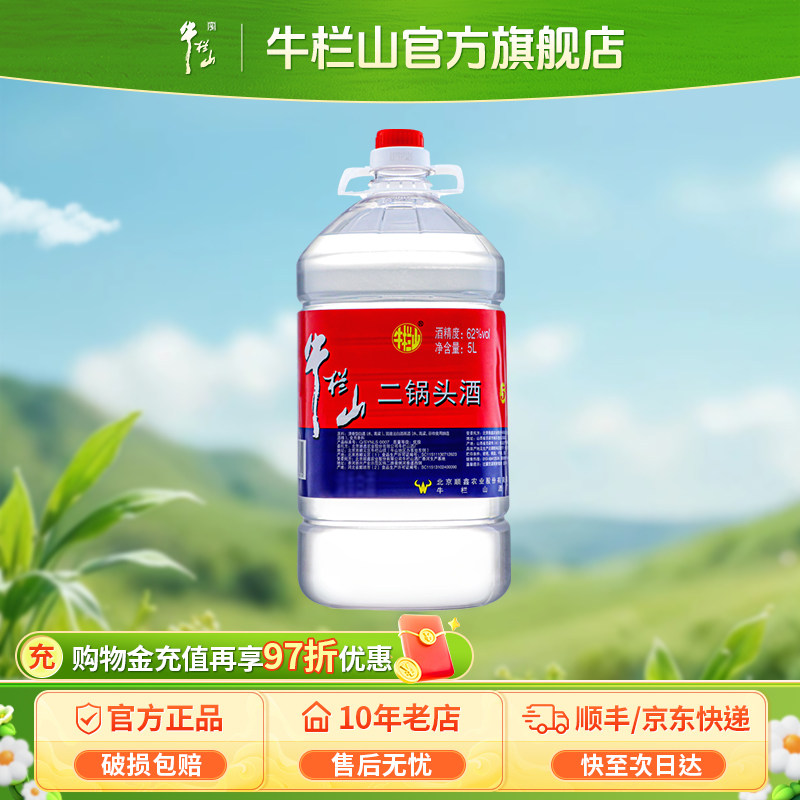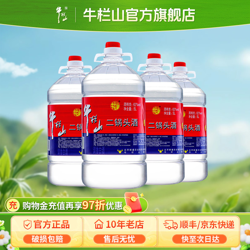 北京牛栏山二锅头大牛桶62度5L整箱4桶装5000ml清香型调香白酒
