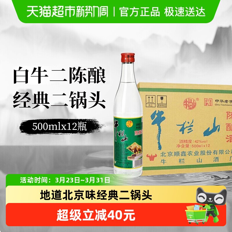 北京牛栏山42度陈酿白牛二500ml*12瓶整箱浓香风格酒水类自饮口粮