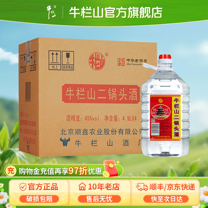 百年牛栏山二锅头45度牛桶白清香风格泡酒水大容量4900ml*4桶正品