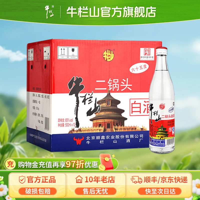 牛栏山北京二锅头65度白瓶高度清香型500毫升*12瓶装白酒水正品