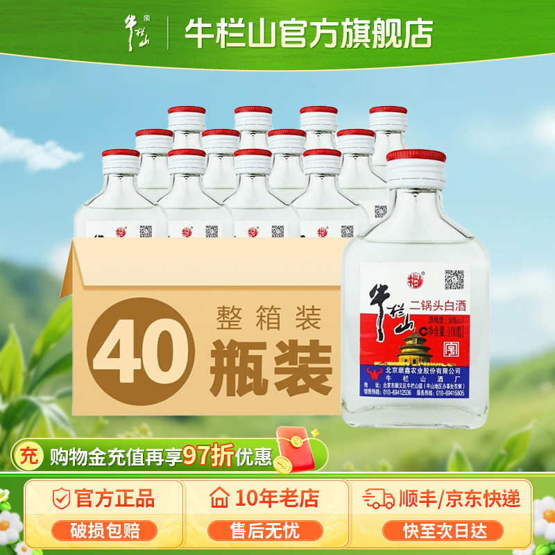 北京牛栏山56度宁波小瓶二锅头清香型100ml*40瓶节日送长辈礼物品