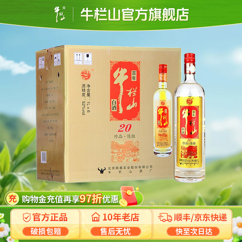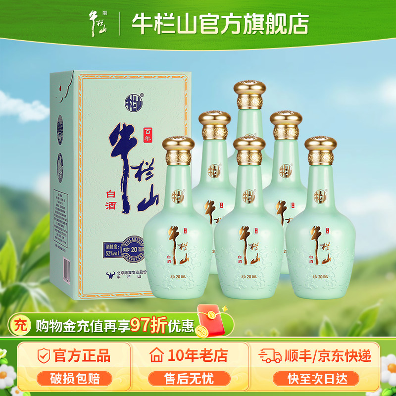 北京牛栏山52度珍酿20浓香型优级白酒水500ml*6瓶整箱装