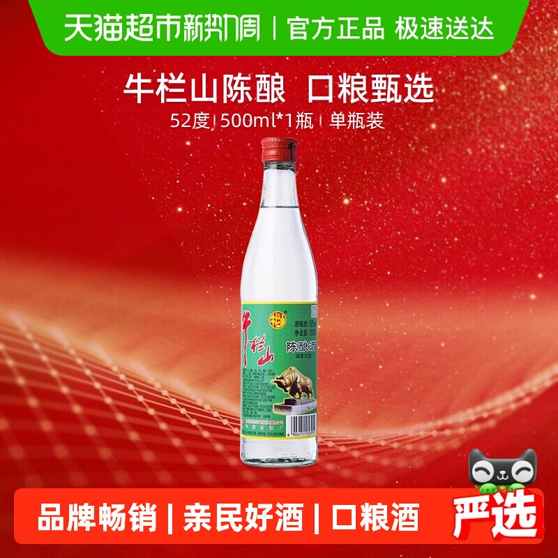 牛栏山52度陈酿/白牛二500ml*1瓶浓香风格高度酒单瓶装