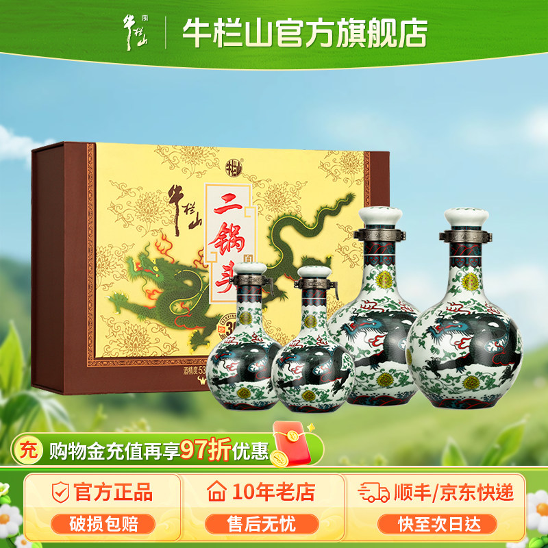 【特级白酒】牛栏山53度二锅头青龙礼盒500ml*2+125ml*2清香型