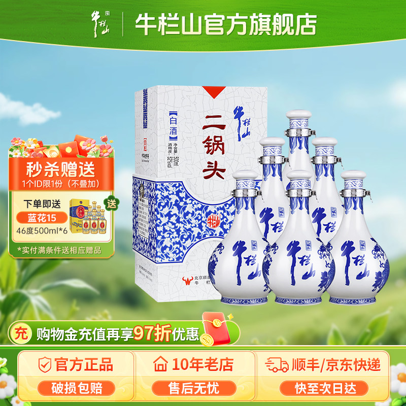 牛栏山二锅头52度青花瓷清香型500毫升*6瓶整箱装白酒礼盒装正品