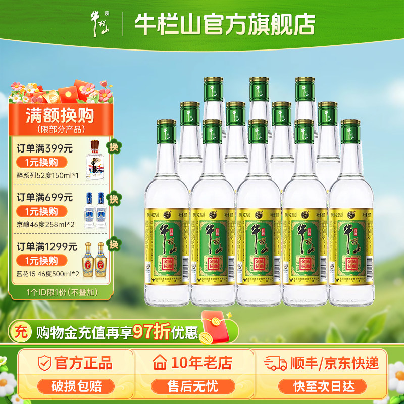 北京牛栏山46度绿牛二锅头清香型12瓶纯粮食白酒水节日送长辈礼物