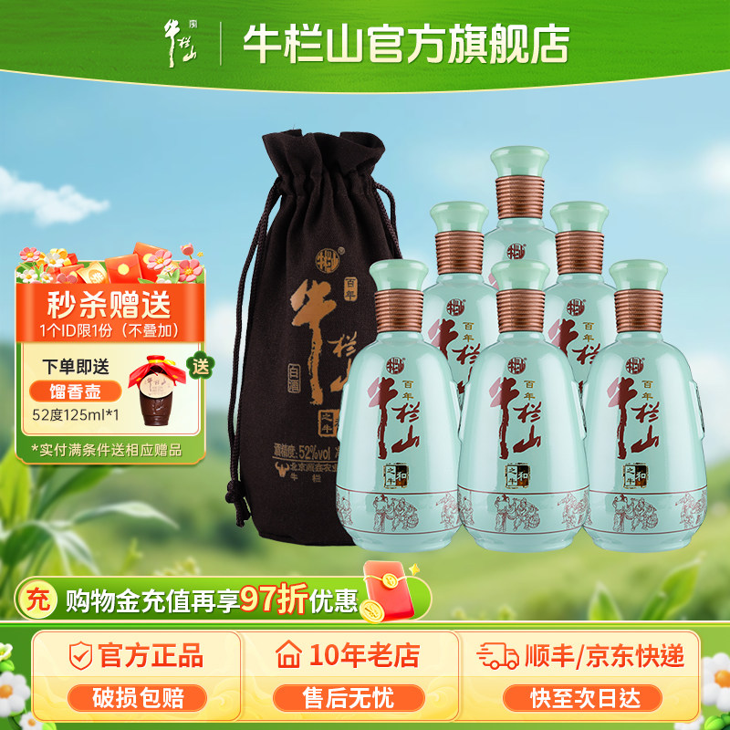 北京牛栏山52度高度和之牛500ml*6瓶浓香型礼品礼物布袋白酒水