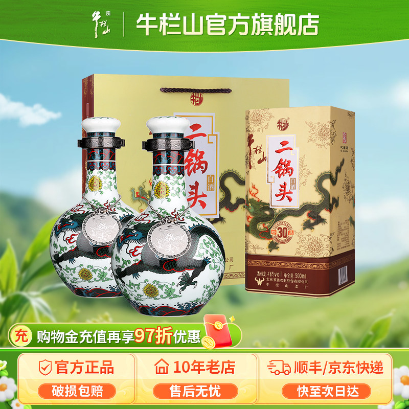 牛栏山二锅头珍品30青龙46度500ml*2瓶清香型白酒官方正品