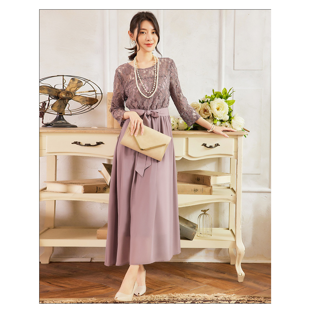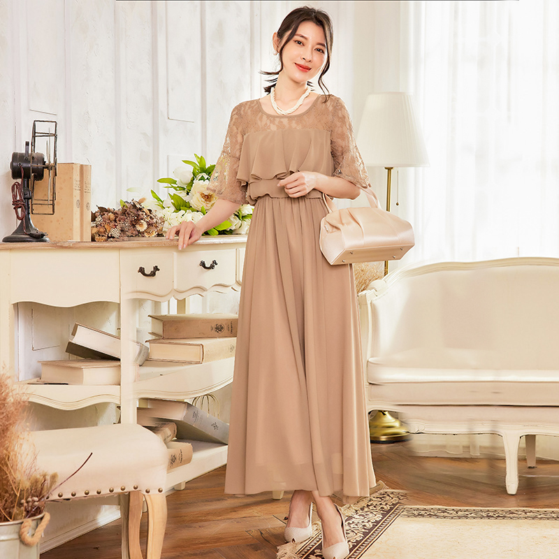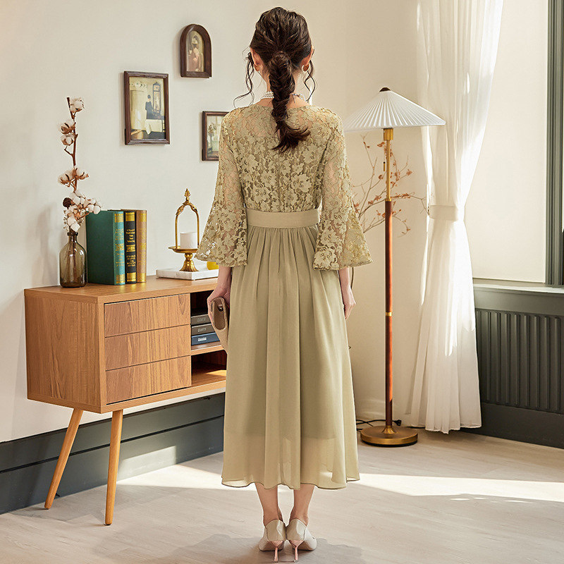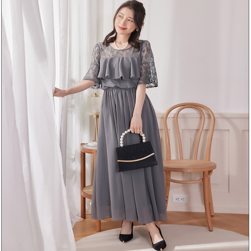 蕾丝拼接雪纺连衣裙子女士修身显瘦长裙子长款日常礼服裙子88528