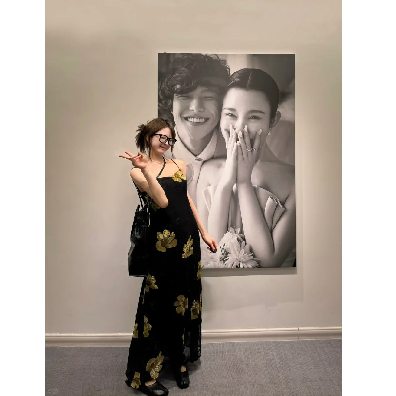 碎花吊带裙2025夏新款气质修身无袖a字裙黑白色中长款雪纺连衣裙
