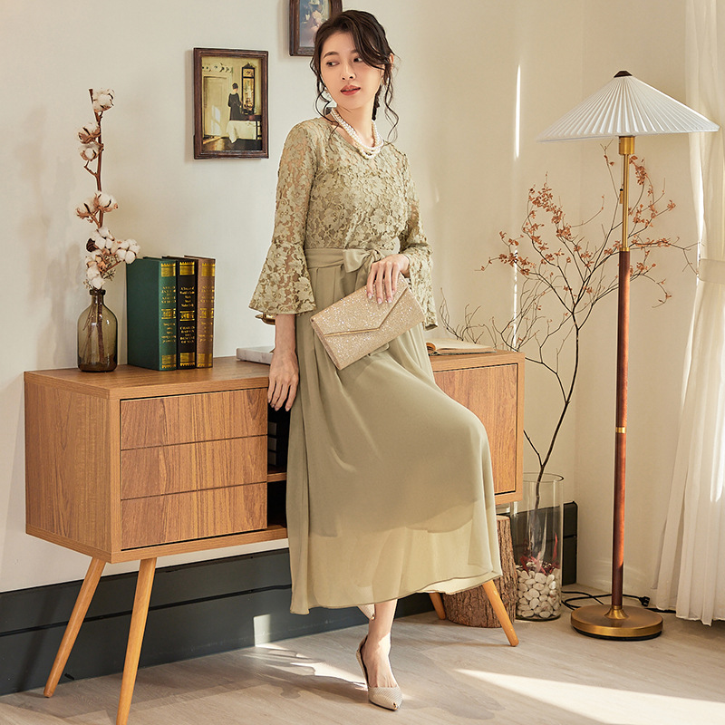 - 复古喇叭袖长裙