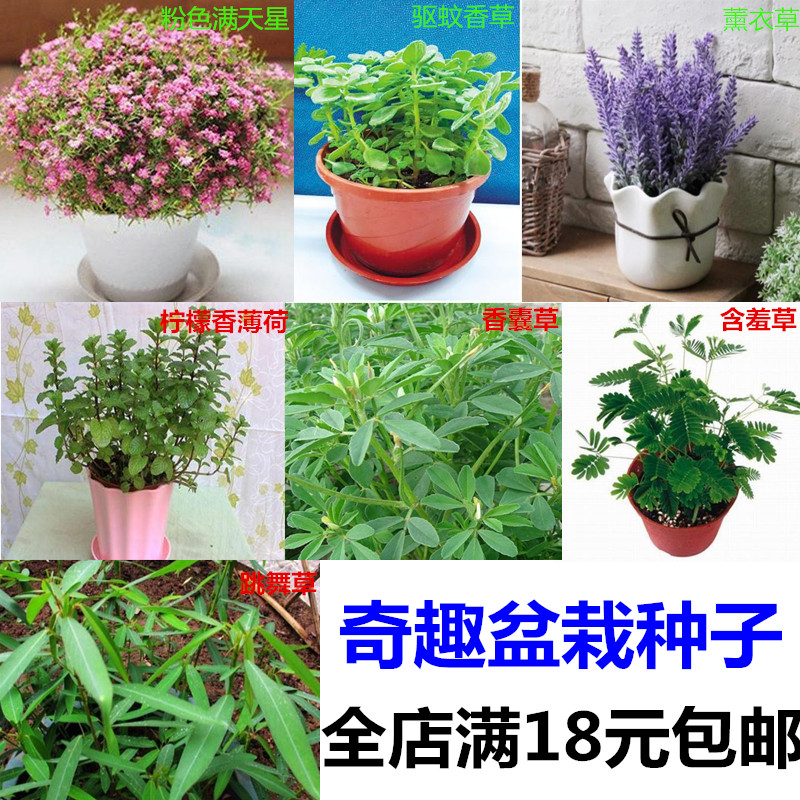 盆景草驱蚊香草薄荷含羞草阳台奇趣 跳舞草香囊草花卉种子满包邮