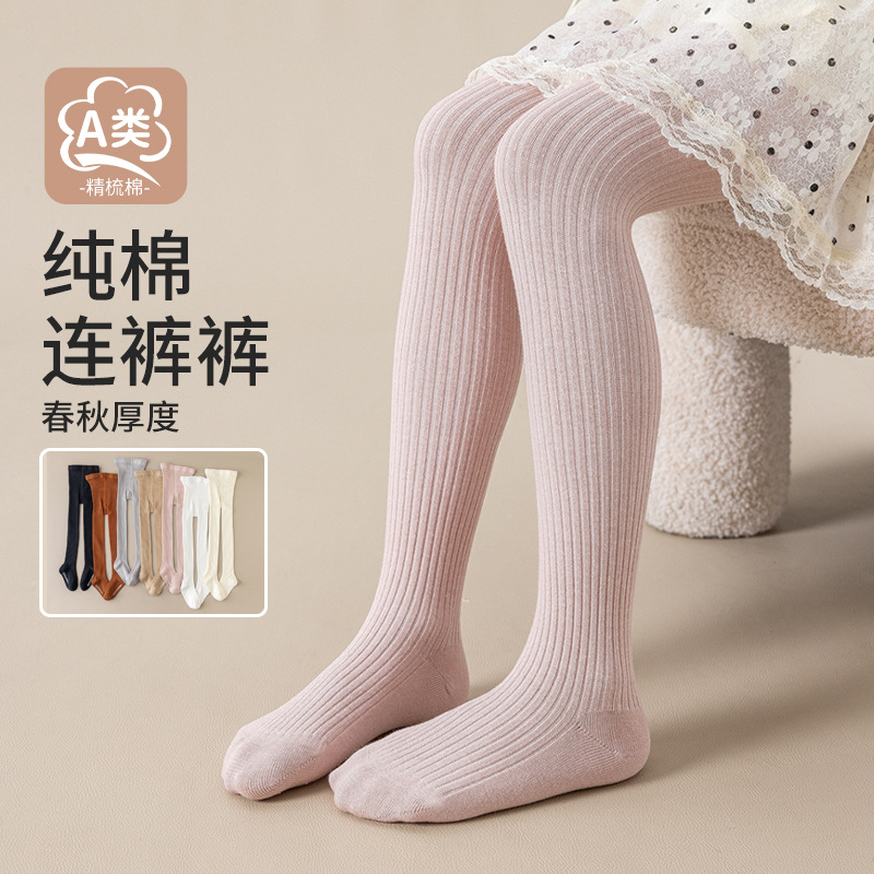 儿童打底裤春秋吸汗精梳棉透气宝宝连裤袜纯色女童女孩一体裤A类