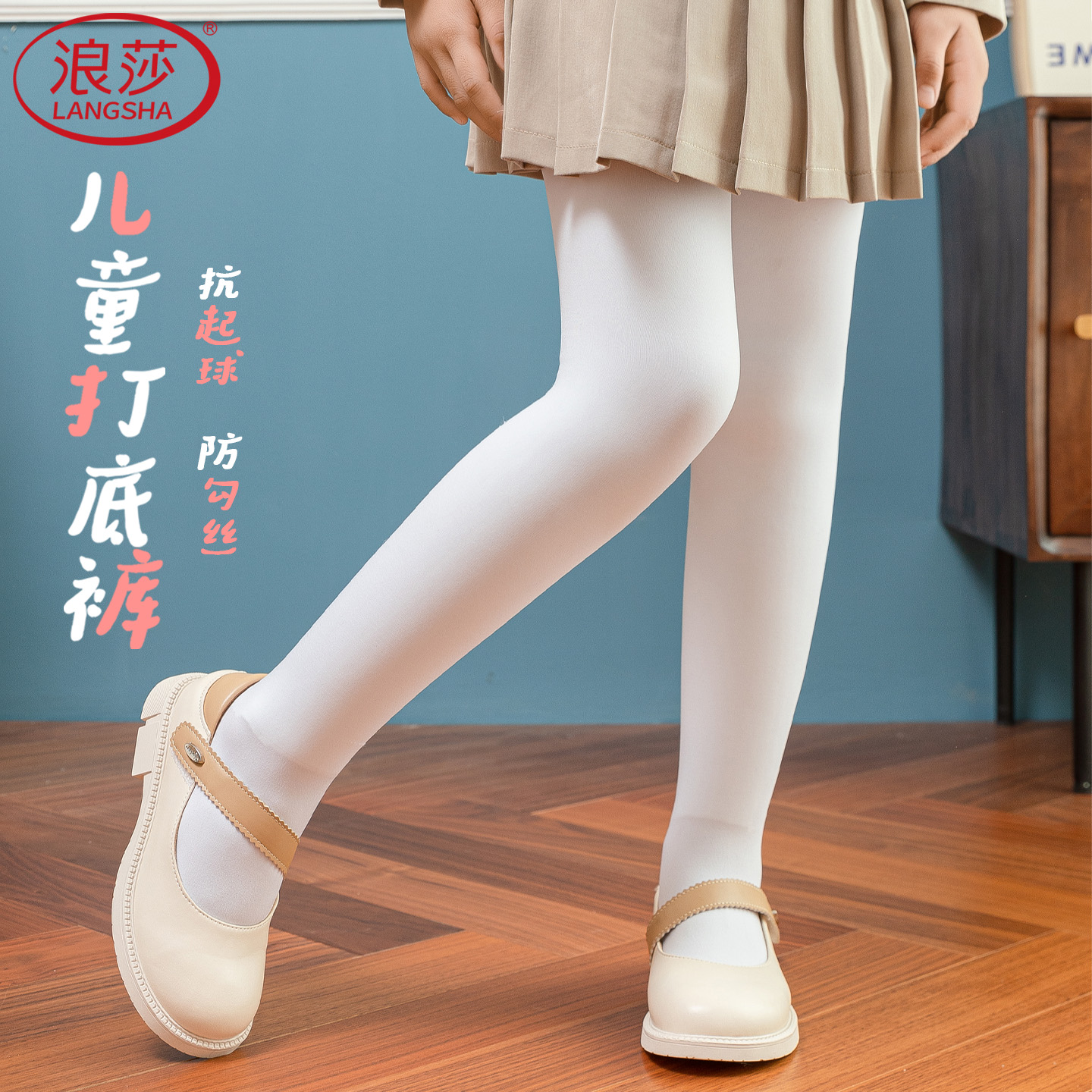 浪莎儿童打底裤春秋冬丝袜连裤袜女孩加绒加厚白色舞蹈袜女童薄绒