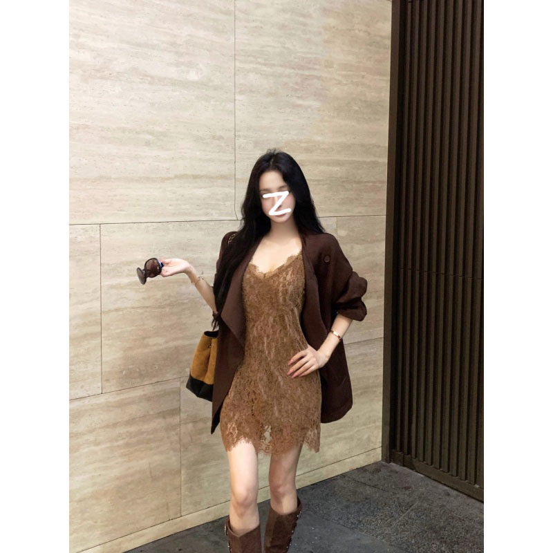 法式小众轻奢显瘦度假风吊带连衣裙新款时尚纯欲御姐蕾丝大码裙子