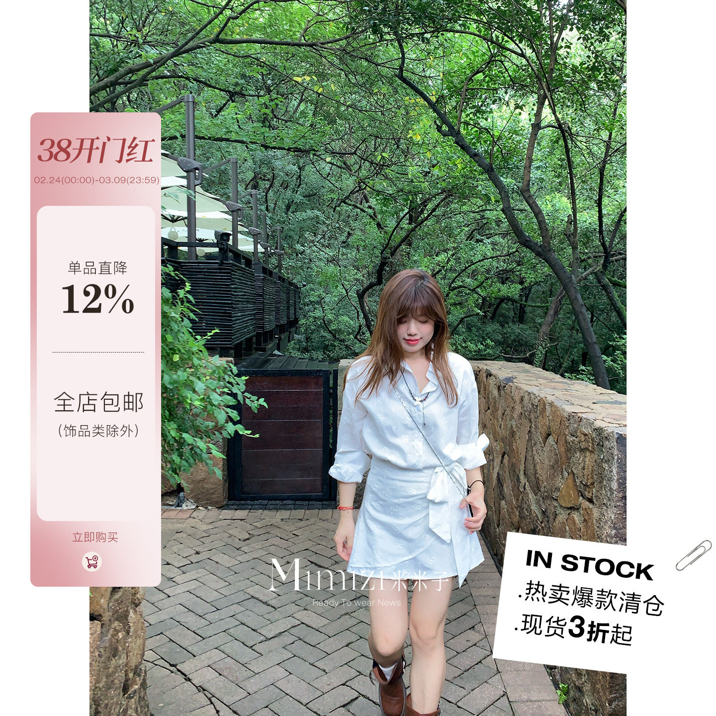法式性感蕾丝拼接衬衫连衣裙女300斤大码秋季新款收腰短款包臀裙